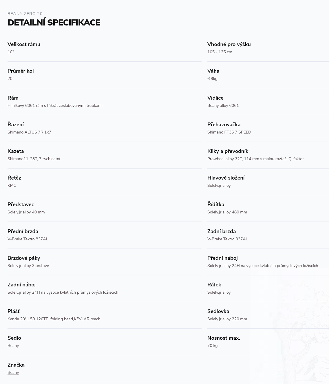 Povyrostlo Vaše dítě a Beany ZERO 16 už je mu malé nebo přesedáte z menšího kola jiné značky? Právě pro Vás tady máme Beany ZERO 20, které stejně jako většina kol v sortimentu Beany přináší v dané kategorii nejlehčí dětské kolo na trhu s váhou kola pouhých 6,9kg.